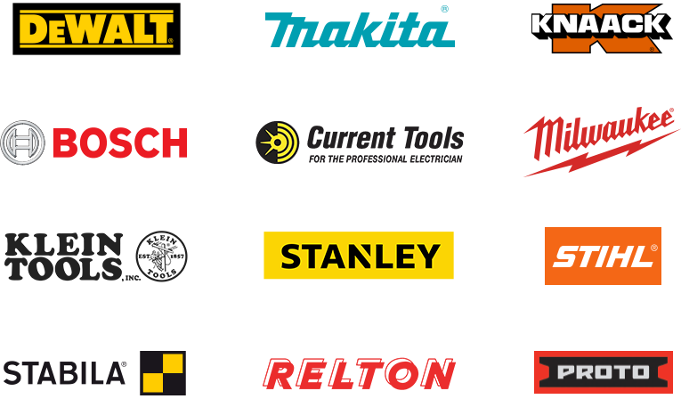 Some of our top brands include DeWalt, Makita, Knaack, Bosch, Current, Milwaukee, Klein Tools, and more.