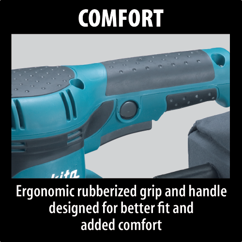 The Makita 1/3 Sheet Finishing Sander (model BO3710) combines fast, smooth performance with a contoured rubberized palm grip and ease-of-use features. The BO3710 is ideal for woodworkers and finish carpenters who require a best-in-class sander. The precision engineered all ball bearing construction is engineered to reduce vibration and noise. The efficient through-the-pad dust collection system helps provide a cleaner work environment, while the fabric dust bag has an extra wide mouth for faster disposal.